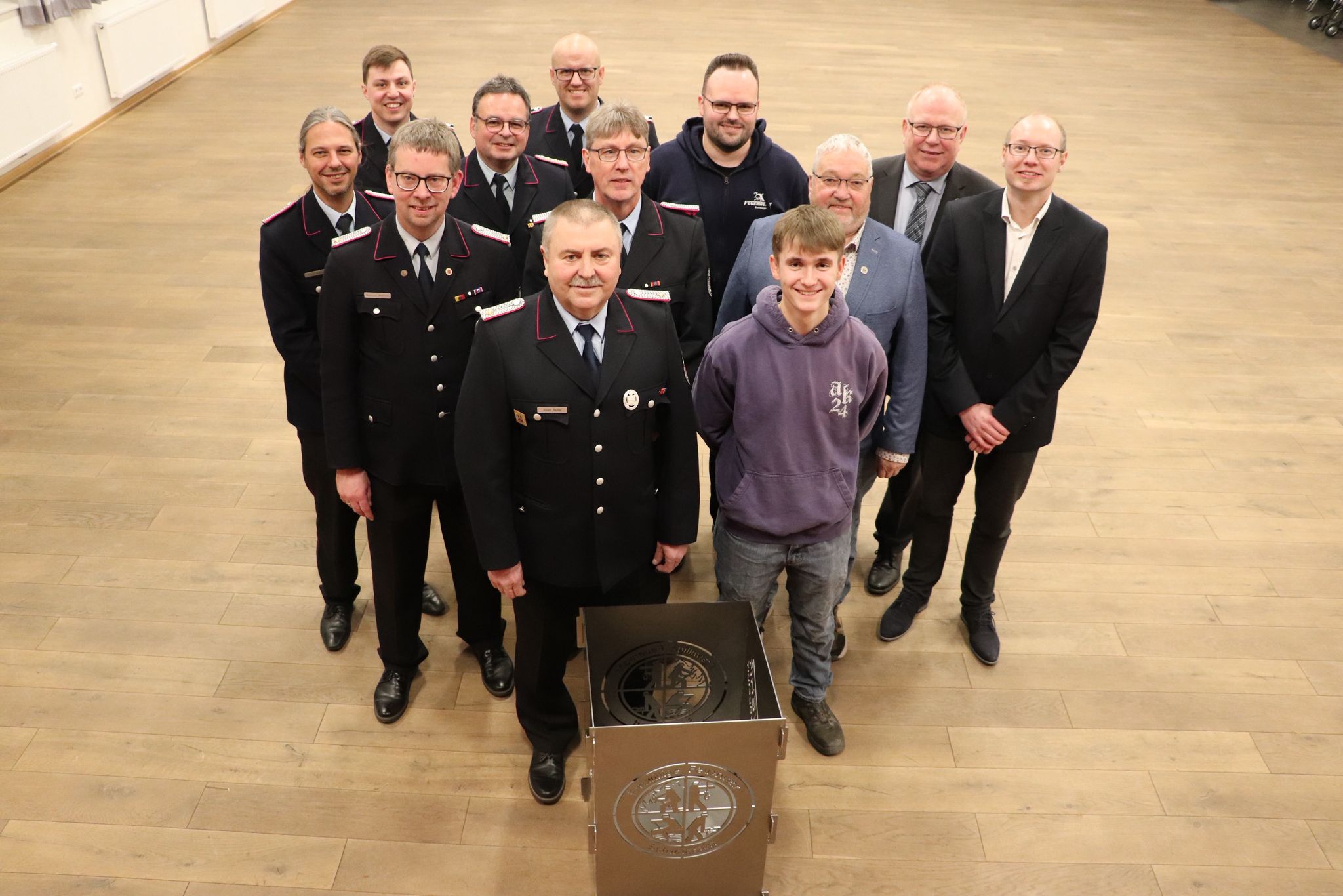 Rattay, seit 1991 Mitglied der Ortsfeuerwehr Schwagstorf und zwischen 2001 und 2007 deren Ortsbrandmeister, nutzte die Gelegenheit, ein Dreivierteljahr vor dem altersbedingten Ausscheiden aus dem aktiven Dienst im Rahmen der Jahreshauptversammlung in die Altersabteilung zu wechseln. „Heute sagen wir danke“, sagte Ortsbrandmeister Markus Molitor. „Danke für deine Zeit, dein Engagement und dein offenes Ohr.“ Als in Präsentform gegossene Anerkennung erhielt Rattay eine Feuertonne mit dem Emblem der Feuerwehr Schwagstorf.